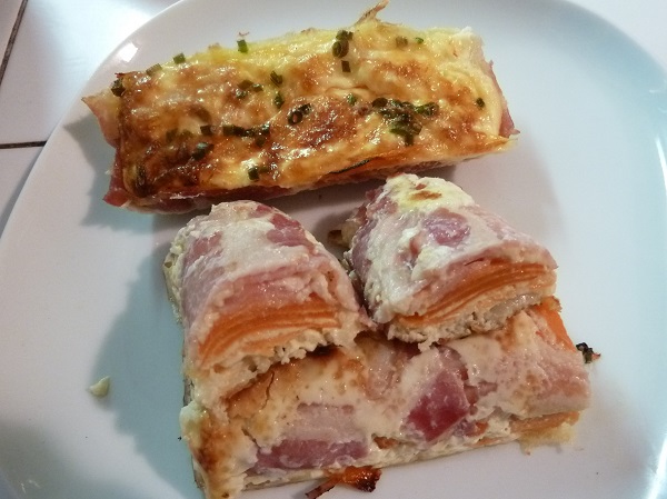 J’ai réalisé cette recette Demarle dans les moules « buchettes » Flexipan. Bien sûr, vous pouvez utiliser n’importe quel moule Sicilone ou classique. Ingrédients pour 12 bûchettes 5 petites carottes (200g) Ciboulette 1 oignon 3 œufs 1 càc de maïzena 40 cl de crème fraîche Gruyère râpé ou autre fromage 12 tranches de lard fumé sel, poivre …