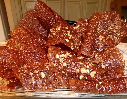 - Faire des petits tas, les poser sur une feuille de papier sulfurisé ou une plaque silicone, les aplatir un peu et enfourner pour 10 mn à 160°.